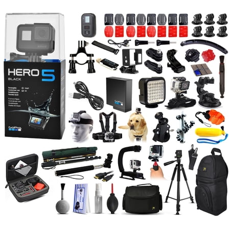 GoPro Hero 5 HERO5 Black Edition with Microphone + X-Handle + LED Lights + Car + Travel Set + Selfie Stick + More