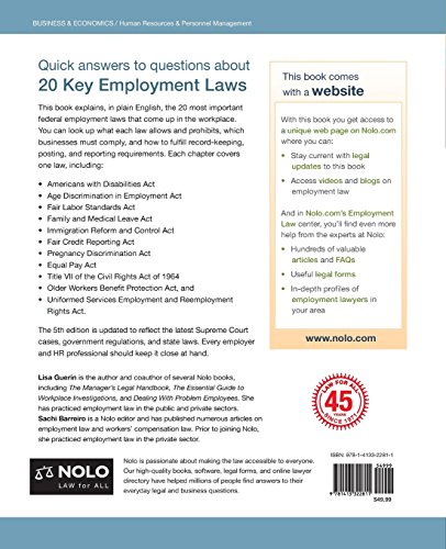 This book explains in plain English the 20 most important federal employment laws in the workplace. You can view what each law allows and prohibits, which companies must comply with, and how to perform record keeping, publication, and reporting requirements.