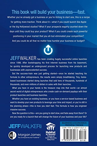 Will your product or business achieve near-immediate motivation and sales, or will it begin to slowly and gradually disappear? The beginning of each business is very important. . . Every truly successful product or business begins with a successful launch. Unfortunately, most entrepreneurs put all their focus on "open doors" without thinking about creating outstanding releases. It doesn't have to be that way. Since 1996, Jeff Walker has been creating huge successful launches in our increasingly digital world. From his basement to guide his first Internet business, he quickly developed a zero-budget underground flow process for launching new products but with unprecedented success. But successful training has just begun - once he begins to teach his formula to other entrepreneurs, the result is simply breathtaking. Tiny home-based businesses started selling tens of thousands of products. . . a few millions. . Even reached millions of dollars in just a few days. What you have mastered is a treasure map of the world - an almost secret entrepreneurial digital society. They learned to create on-demand paydays through product launches and commercial releases. Whether you have an existing business with an existing product, or if you have a service-based business and want to develop your own product to take full advantage of your time and influence, or if you are still in the planning phase, it has not yet begun. . Here is how your owner's manual starts. This formula is how you design large-scale success. The question is now. . Will you slowly begin to slowly disappear? Or are you ready to design a startup that will change the future of your business and your life? Launch an internet millionaire's secret formula to create almost anything on the web, a business that you love and live in,