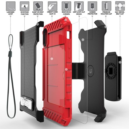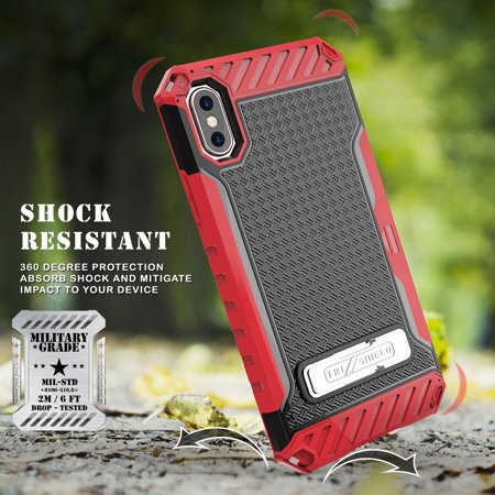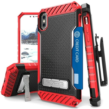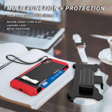 iPhone X Jacket, Three Shields, Rugged Case[with Belt Hip Holster + Magnetic Kickstand and Credit Card Slot] [Bonus Lanyard Strap and Screen Protector Included]