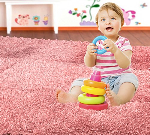Orignal From: Heming weight fuzzy carpet - 9 fluffy carpet children - Ideal nursery decor, baby room, game room and children's room. Plush, velvety texture, non-slip & durable carpet (pink)