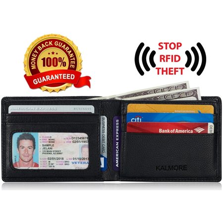 - RFID-SAFETY-PRIVACY-SECURITY: KALMORE credit card wallet is equipped with advanced RFID security technology to protect your valuable data and prevent RFID readers from scanning your credit card, debit card, bank information, smart card, RFID driver's license and Other RFID cards