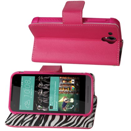 Orignal From: REIKO HTC DESIRE 520 Wallet with ZEBRA Hot Pink Print