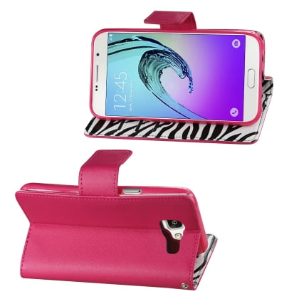Orignal From: REIKO Samsung GALAXY A7 (2016) three-in-one wallet with built-in ZEBRA hot pink