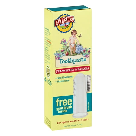- natural formula. If swallowing is safe. Fluoride free. Contains oat beta-glucan and vitamin B5. Free chewing gum brush. new model! The same great formula. Earth's Best Strawberry & Banana Toothpaste uses all-natural ingredients such as calcium lactate to safely and gently clean delicate gums and promote strong teeth. Delicious all-natural strawberry and banana flavors encourage brushing, and if swallowed, our fluoride-free formula is completely safe. The best choice for trusting the planet is to keep your child on the path to good oral health throughout his life. The natural formulation does not contain artificial colors or fragrances, phthalates, sodium lauryl/lauryl ether sulfate, sodium methylsulfate, parabens or harsh preservatives. For a healthy baby, try all of our baby products, including baby body care, organic infant formula, cereals, shake baby food, and new odorless chlorine-free alcohol-free diapers and baby wipes. Join Earth's Best Brand Family at www.earthsbest.com and get valuable coupons and other special offers. Notes? Call 800-442-4221 or write to us: The best consumer relationship on earth: 4600 Sleepytime Drive, Boulder, CO 80301. FSC: Recycled paper. Recycling. Can be used repeatedly. Once opened, good 18 months
